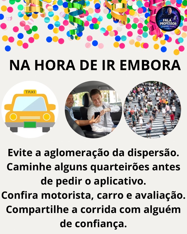 volta, pedimos para compartilhar a corrida, alertamos sobre bebida, copo,